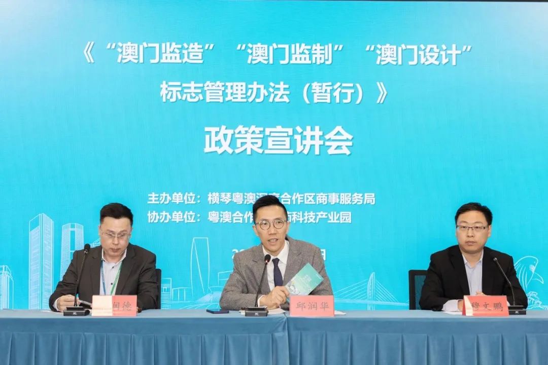 11月17日,《“澳門監(jiān)造”“澳門監(jiān)制”“澳門設(shè)計”標(biāo)志管理辦法(暫行)》(以下簡稱《管理辦法》)政策宣講會在橫琴粵澳深度合作區(qū)(以下簡稱合作區(qū))琴澳國際法務(wù)集聚區(qū)舉行。此次宣講活動由合作區(qū)商事服務(wù)局主辦,由參與《管理辦法》起草的珠海大橫琴集團(tuán)有限公司下屬企業(yè)珠海大橫琴科技發(fā)展有限公司(以下簡稱大橫琴科技公司)提供支持?;顒又荚趲椭髽I(yè)全面了解申請標(biāo)志的資格條件、使用標(biāo)志的具體要求,以及標(biāo)志運行管理的保障機制等。