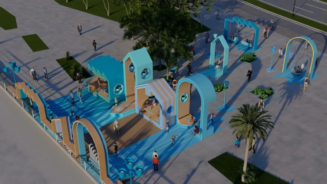 在一個(gè)個(gè)形態(tài)各異的“城市小屋”串聯(lián)下,分別以綠色、藍(lán)色為主色調(diào)的城市客廳已基本成型。