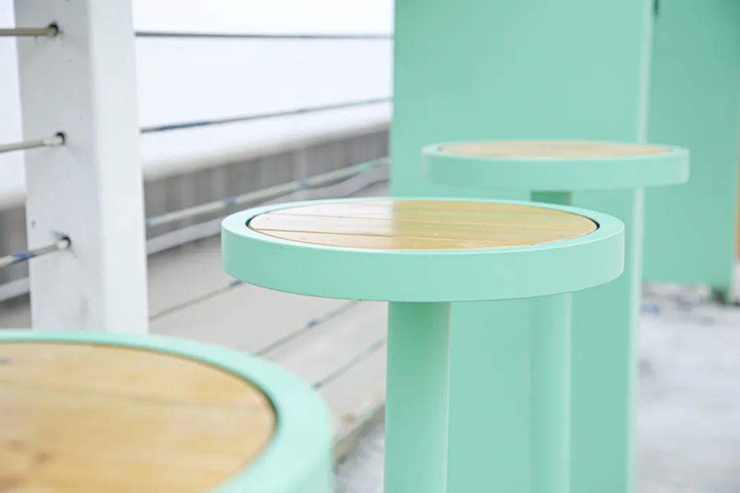 考慮到項(xiàng)目依水而建,為保障城市家具,在濱海氣候環(huán)境下的正常使用,在家具選材及制作工藝上,更加注重防水、防銹、防腐性能。