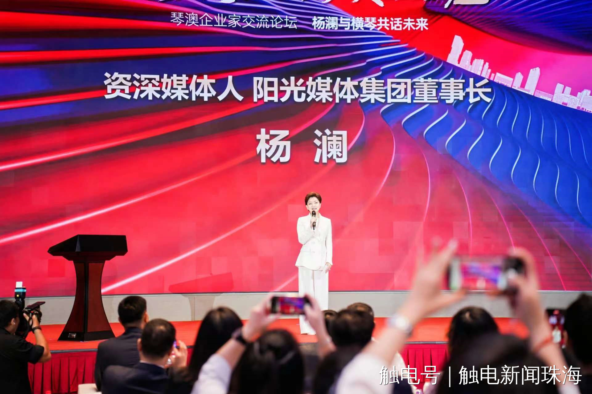9月22日,由橫琴粵澳深度合作區(qū)(以下簡稱“合作區(qū)”)經(jīng)濟(jì)發(fā)展局支持,大橫琴集團(tuán)、叡智蓮花公關(guān)服務(wù)有限公司聯(lián)合主辦的“潮涌大灣區(qū)·琴澳企業(yè)說”琴澳企業(yè)家交流論壇活動(dòng)成功舉辦。繼“潮涌大灣區(qū)·澳門青年說”論壇后,大橫琴集團(tuán)再次攜手資深媒體人、陽光媒體集團(tuán)董事長楊瀾女士,匯聚來自新能源、科技材料、人工智能等各行各業(yè)共500多位代表和嘉賓,共議企業(yè)家時(shí)代策略,共繪琴澳發(fā)展新篇章。合作區(qū)民生事務(wù)局局長黃宇杰,大橫琴集團(tuán)黨委副書記、董事、總經(jīng)理王宇聲,資深媒體人、陽光媒體集團(tuán)董事長楊瀾,澳門大灣區(qū)金融商會(huì)創(chuàng)會(huì)主席李偉杰,大橫琴集團(tuán)副總經(jīng)理姜平等領(lǐng)導(dǎo)嘉賓出席活動(dòng)。
