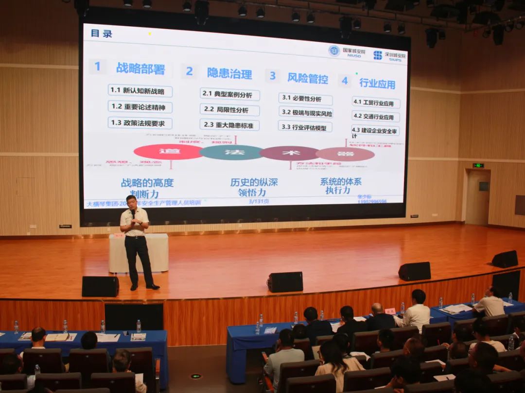 本次培訓班為期一天,培訓對象包括集團本部業(yè)務骨干,各下屬企業(yè)安全總監(jiān)、安全生產和生產經(jīng)營(工程)部門負責人及業(yè)務骨干等170余人。培訓方式為外部專家講課,培訓緊緊圍繞“拓展管理思路、提高管理質效”的主題,重點剖析安全風險分級管控和隱患排查治理雙重預防機制,進一步探討企業(yè)落實安全生產主體責任的對策建議。