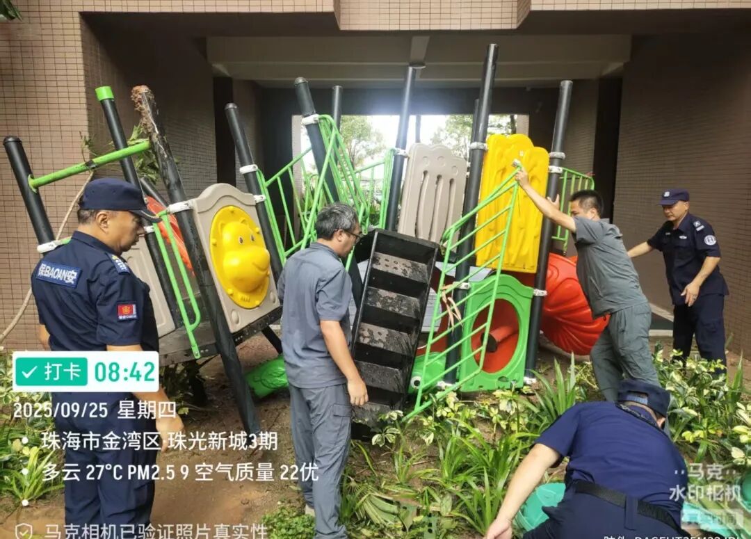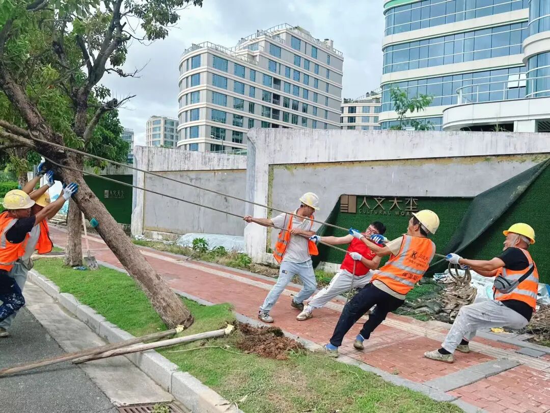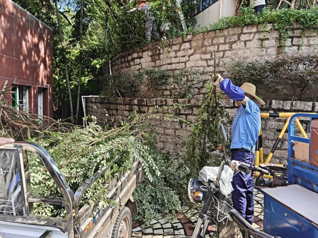 9月25日,珠光集團(tuán)黨委嚴(yán)格落實(shí)“雙報(bào)到”機(jī)制,主動(dòng)對(duì)接社區(qū)需求,迅速啟動(dòng)集團(tuán)黨員先鋒突擊隊(duì)中的13支小分隊(duì)前往拱北街道華僑社區(qū)及灣仔街道作物社區(qū)、富興社區(qū)、桂圓社區(qū)、灣仔社區(qū)等社區(qū)開展清理倒伏樹木的殘枝落葉、排查安全隱患等工作,保障車輛與行人安全通行。