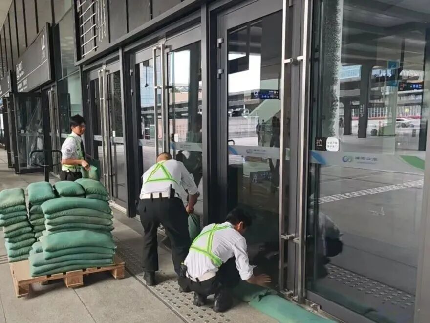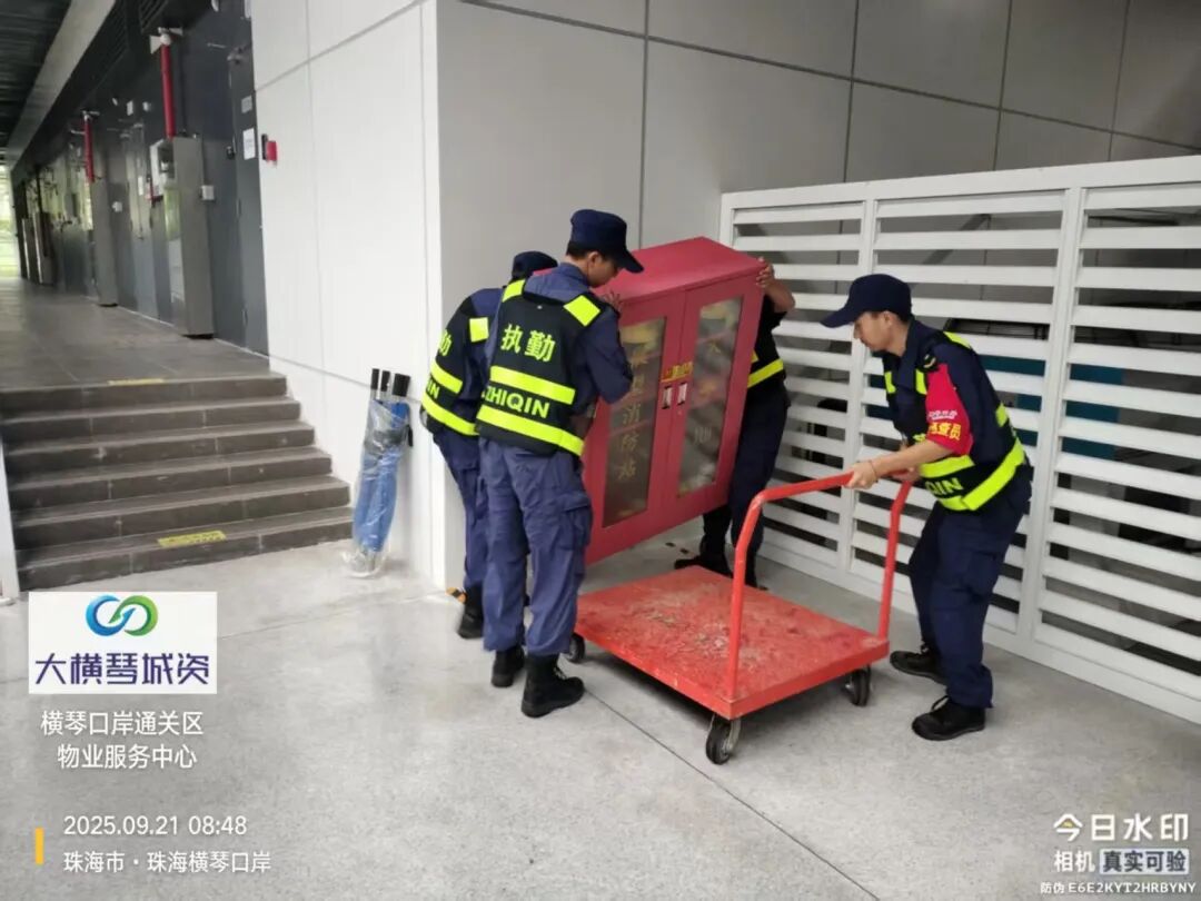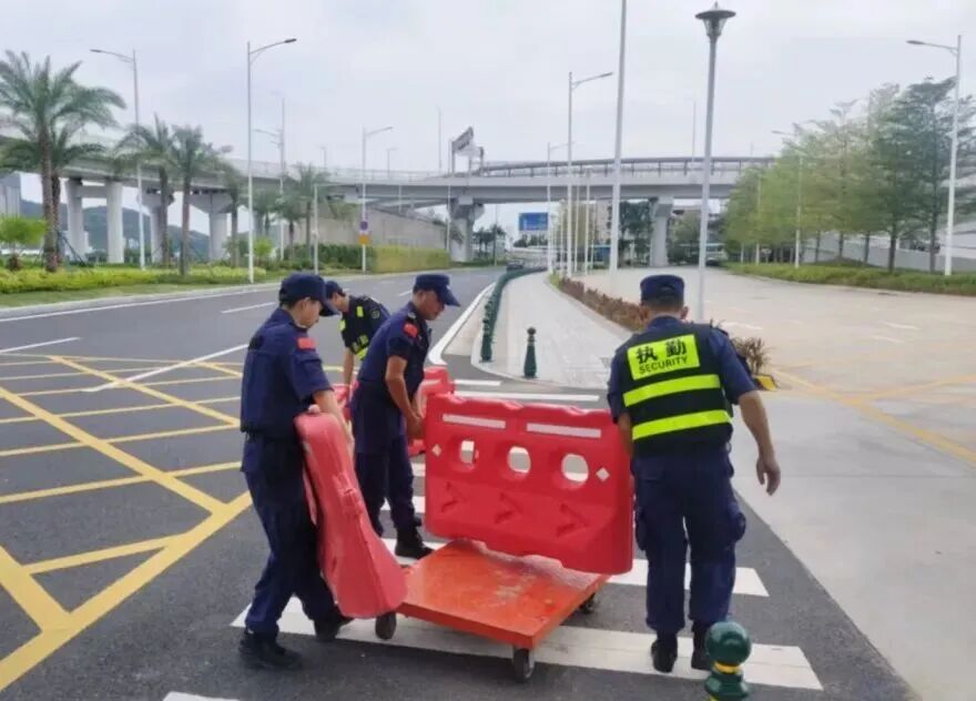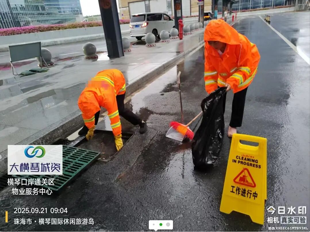 在橫琴口岸區(qū)域,提前排查200多個集水井,調集230個緊固件加固門窗,近3000條沙袋、近100個防洪擋板、11臺水泵等應對福臨道、地庫36處接駁口、負二層下沉庭院、U行車道等重點區(qū)域強排和封堵需要。同時對通關區(qū)域的100余扇玻璃門進行加固,在易水浸區(qū)域放置沙袋、擋板。同時,全面清理雨水井、排水溝渠,確保排水暢通。